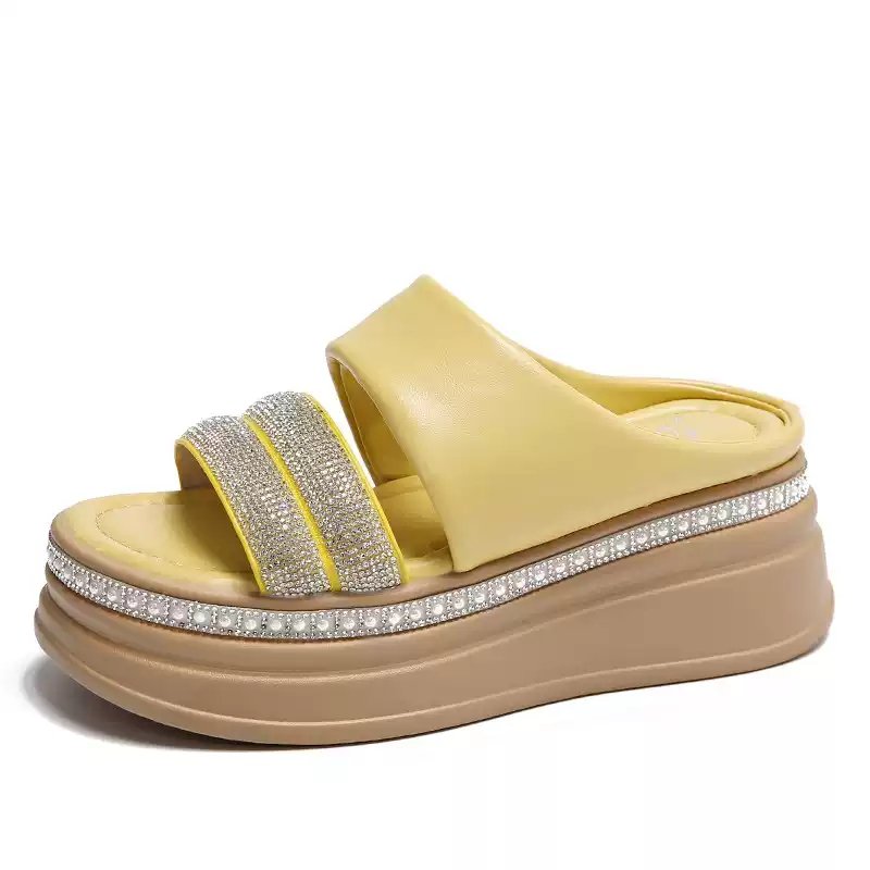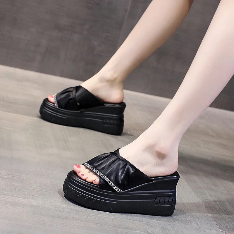 شبشب عصري مزين بحجر الراين بكعب ويدج ونعل سميك 8 سم