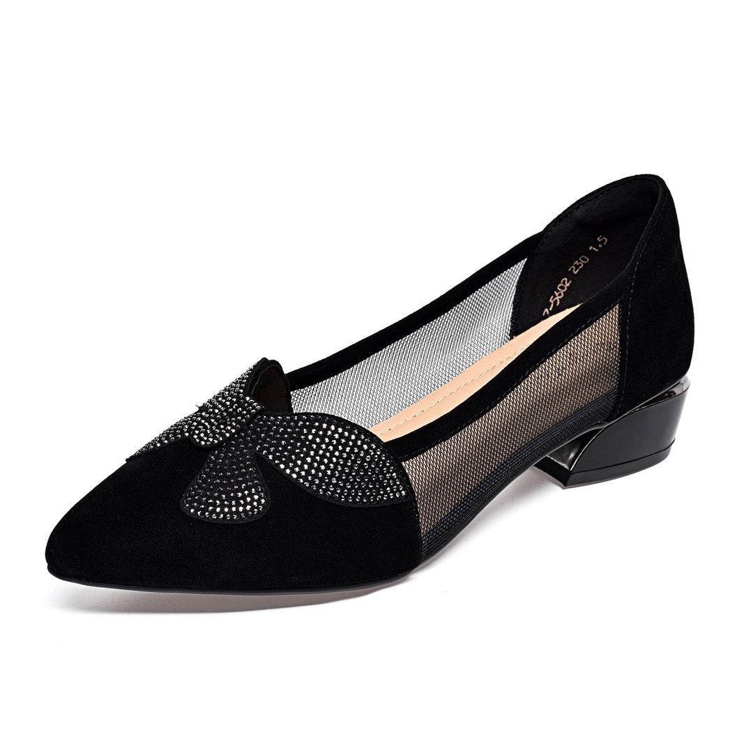 (جيد التهوية ولا يتعب الأقدام) صندل أنيق بكعب متوسط مزين بفراشة بأحجار الراين