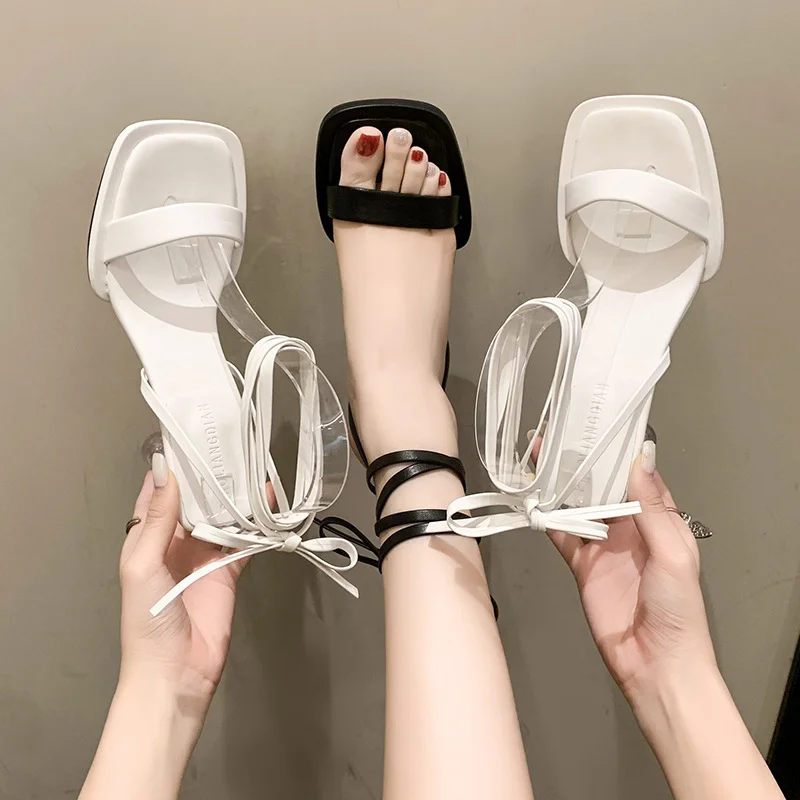 صندل بكعب عالي مكتنز برباط للنساء
