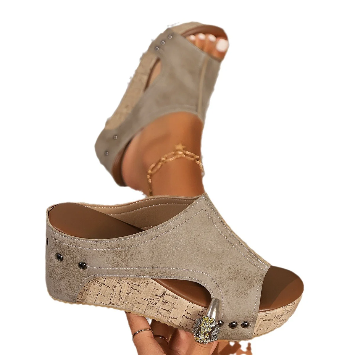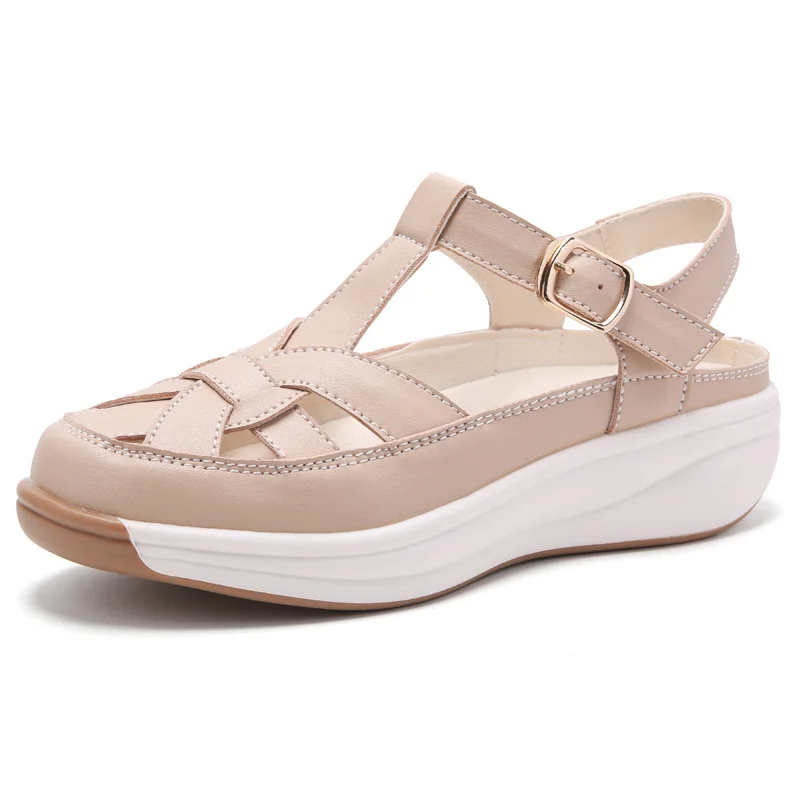 صندل كاجوال عصري بكعب ويدج ذو مقاس كبير للنساء