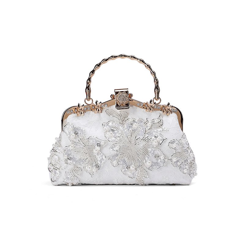 حقيبة مجوفة مطرزة مع اللؤلؤ والمقبض بنمط الخيزران