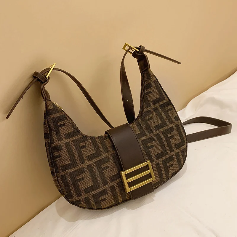 حقيبة كتف عصرية مزينة بالطباعة الرجعية للنساء