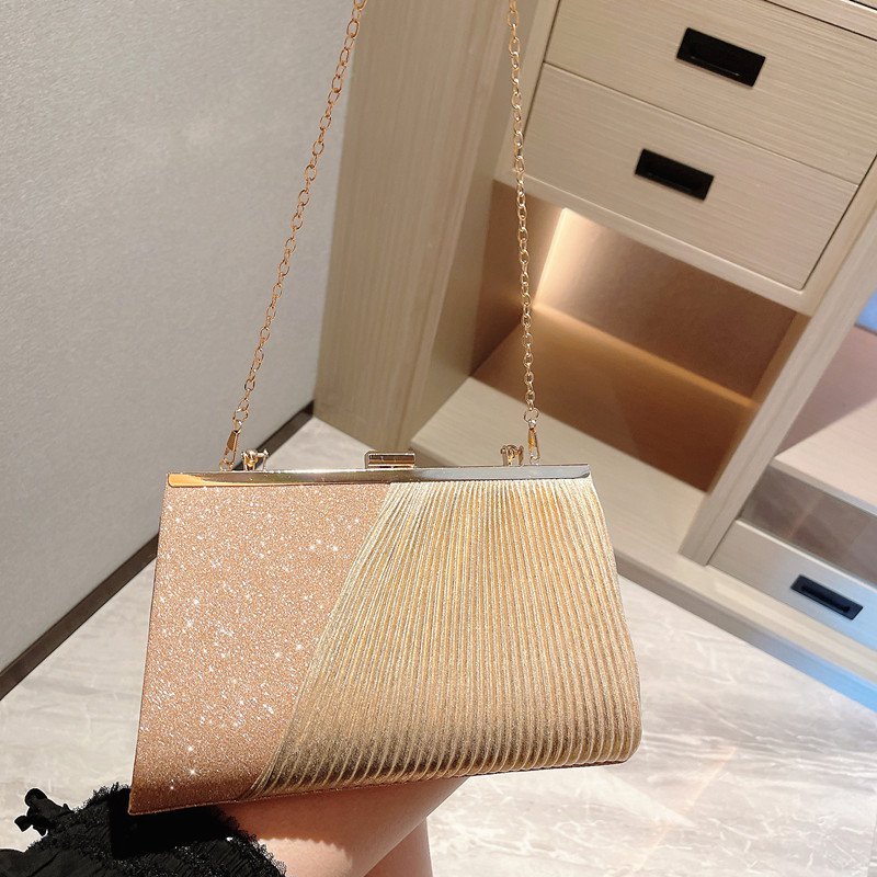 حقيبة سهرة فاخرة مشرقة مزينة بطيات أنيقة