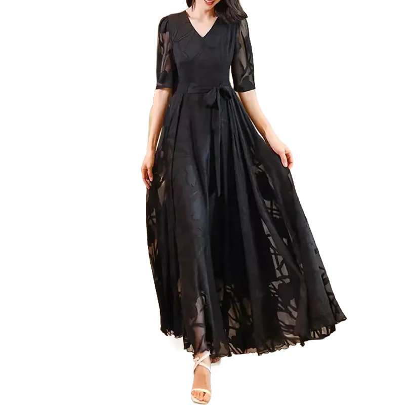 فستان طويل بحاشية جذابة لتشكيل منحنى الجسم