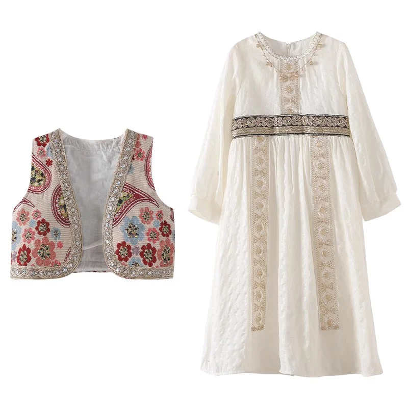 【تصميم كلاسيكي للعلامة التجارية】 فستان ذو قطعتين مع فيست بحرفة التطريز