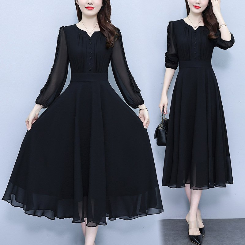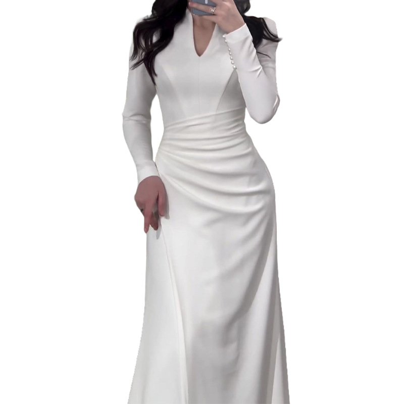 فستان طويل كلاسيكي وأنيق بأكمام طويلة