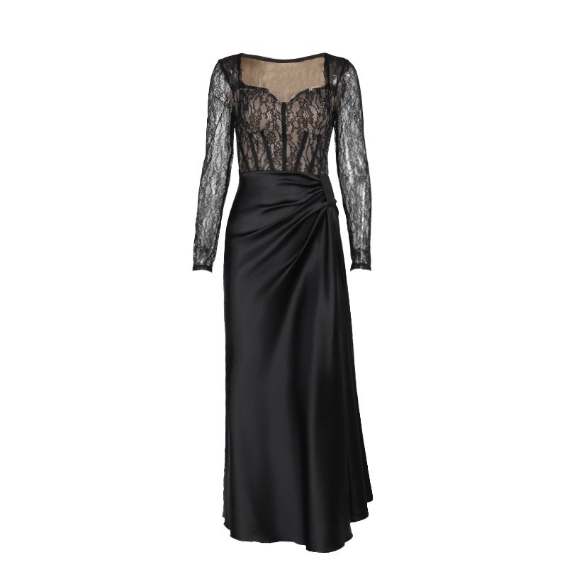 فستان طويل ضيق فرنسي كلاسيكي، تصميم دانتيل يدوي